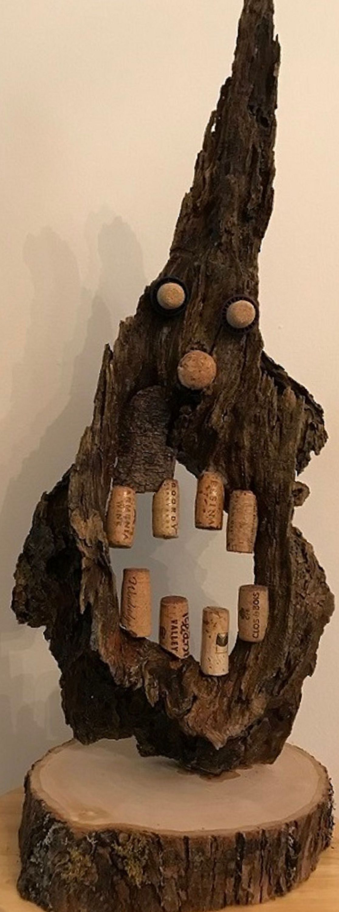 Tree remnant with liquor/wine corks