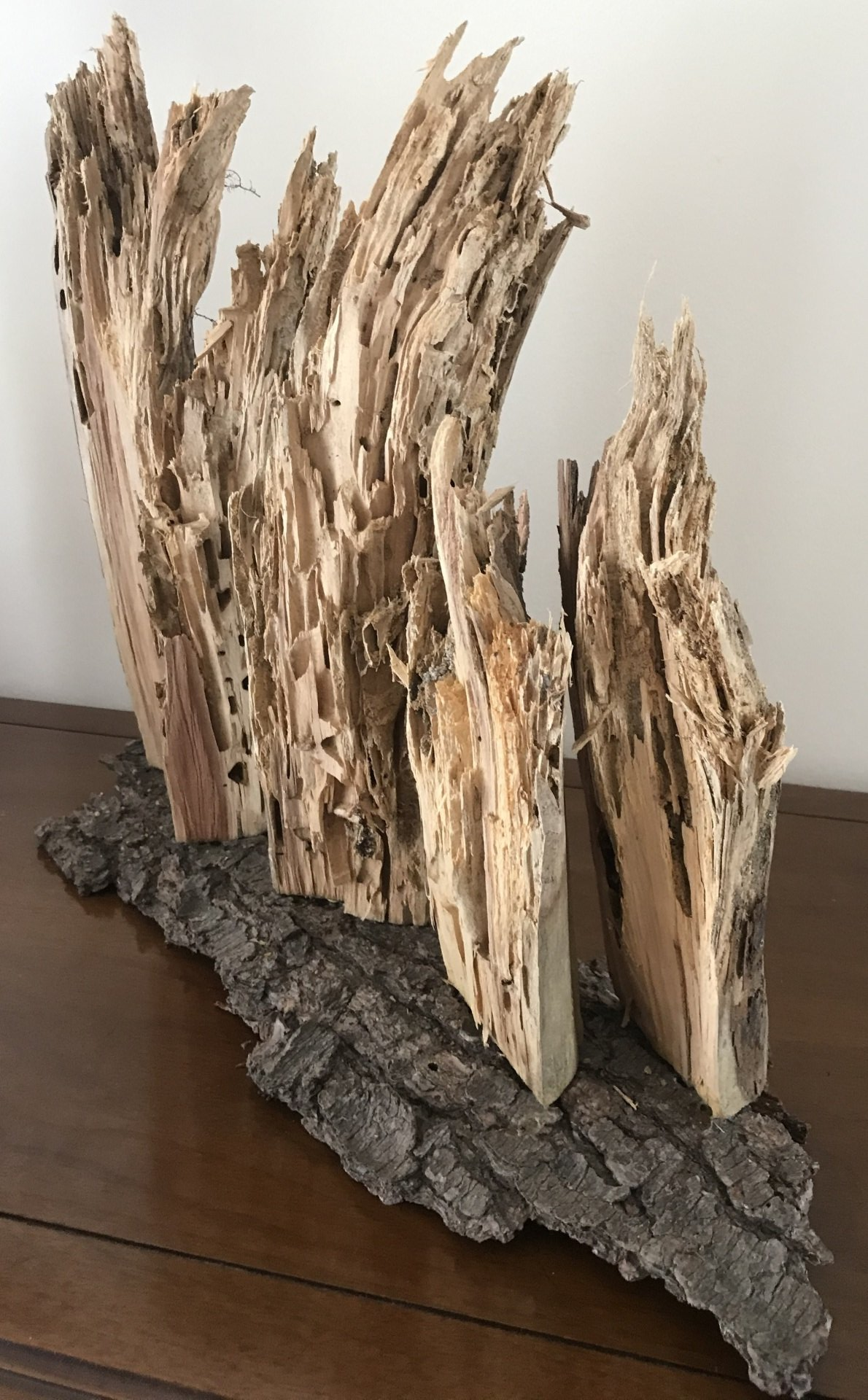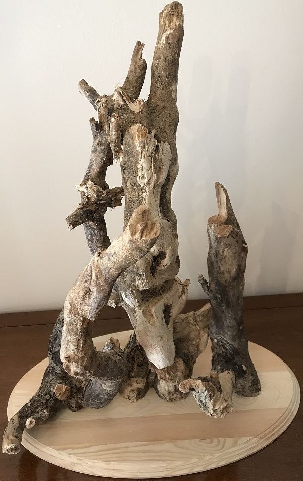 Upside-down tree root on wood base